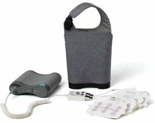תמונה 1. Optune, מכשיר רפואי נייד המופעל על ידי סוללות נטענות או מתחבר לשקע חשמלי, לייצור TTFields בשימוש ביתי