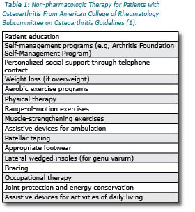 בטבלה 1 רשימה מלאה של סוגי הטיפולים הלא תרופתיים האפשריים לדלקת מפרקים ניוונית.