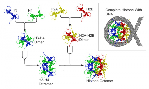 היסטון הוא חלבון טעון חיובית החיוני לאריזת ה-DNA. שתי חומצות האמינו הדומיננטיות של היסטון הן ליזין וארגינין, לכן ההיסטונים הם המרכיבים הבסיסיים ביותר של כרומטין. ההיסטונים הם חלבונים מאוד משומרים ב-species השונים. הם בעלי מבנה גלובולרי ונקשרים לשיירי הפוספאט של DNA. זוהו 5 סוגי היסטון: H3 ו-H4 היוצרים דימר וטטרמר, ו-H2A ו-H2B היוצרים אף הם דימר וטטרמר. הסוג החמישי H1 מקשר את הטטרמרים ליצירת octamer (Cozzani וחב' ב- Autoimmune Dis משנת 2014). חמשת סוגי ההיסטון מאופיינים על ידי ההבדלים במשקלם המולקולרי הנע בין 11 ל-23 קילו-דלטון, וכן לפי תכולת הליזין והארגינין שלהם.