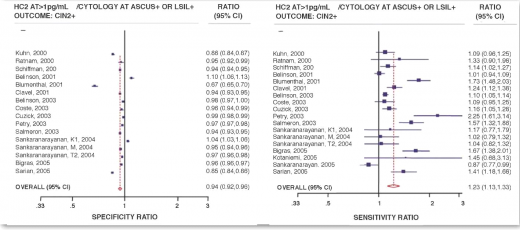 HPV DNA TEST מגלה את כל הנשים הנשאיות של הנגיף, גם אם מדובר בזיהום חולף, לכן הוא רגיש יותר מבדיקת פאפ אשר תגלה שינויים בתאים, לרוב בעקבות זיהום עיקש. הרגישות של סקר הפאפ גבוהה יותר מזו של סקר ציטולוגיה (84% מול 57% בממוצע), אך אנו משלמים מחיר עבור הרגישות הגבוהה הזאת: ירידה בסגוליות, כלומר, תוצאה חיובית שבמקרים רבים אין לה משמעות, לכן הסגוליות של הסקר הציטולוגי גבוהה יותר בהשוואה לסקר מבוסס 95%) HPV DNA מול 88%).[10] (תרשים 1) אחת הדרכים להגדיל את הסגוליות של סקר מבוסס HPV DNA ולמנוע תוצאות חיוביות כוזבות היא לבצע סקר זה רק מעל גיל 30, כדי למנוע טיפול יתר בזיהומים חולפים אשר שכיחים מאוד מתחת לגיל 30.[11]