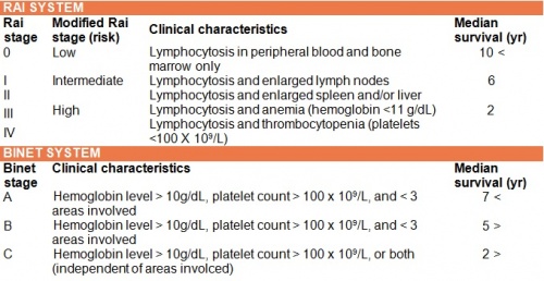 המחלה מסווגת על פי קריטריוני בינט (Binet classification) וראי (Rai staging system) כמפורט בטבלה 6.