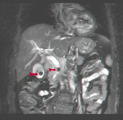 ה- MRCP היא בדיקה אמינה מאוד לגילוי פתולוגיות בדרכי המרה ואבני מרה (תצלום 29.8) והמהלך האנטומי של דרכי המרה.