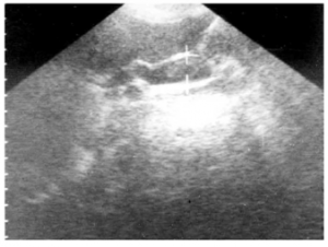 | תצלום 28.8: סונר המראה הרחבה של דרכי המרה התוך כבדיות (מימין) וצינור המרה המשותף (משמאל). | |