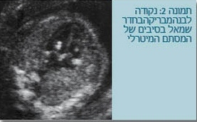 - יש ששולחים במקרים של מציאת עורק טבורי בודד, ריבוי מי שפיר או מציאת מוקד אקוגני בלב העובר. מוקד אקוגני בלב העובר הוא נקודה לבנה, או מבריקה, בדרך כלל בחדרי הלב, יותר בחדר שמאל, שכיחה מאוד ומתייחסים אליה כאל סמן סטטיסטי חלש לתסמונת דאון (תמונה 2).