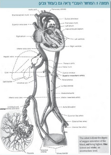 המחזור העוברי שונה למדי מהמצב שלאחר הלידה (תמונה 1):