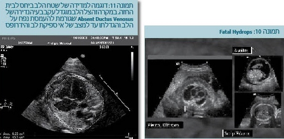 - האם ניכרים סימני סבל, כמו אי ספיקת לב ובצקת כללית של העובר (Hydrops fetalis).