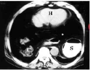 בדרך כלל התלונות של חולים אלה, באם קיימות, אינן ספציפיות וכוללות תסמינים שונים ממערכת העיכול. האבחנה מתבצעת בצילום חזה קדמי וצדי, שבו רואים נוזל ואוויר בבית החזה התחתון בחלקו הקדמי. מתן חומר ניגוד לפני הצילום מסייע לאבחנה.