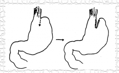 - על-ידי תפירת הקיבה לדופן הקדמית של הבטן, כלומר Anterior gastropexy, כמו בשיטת Boerema.