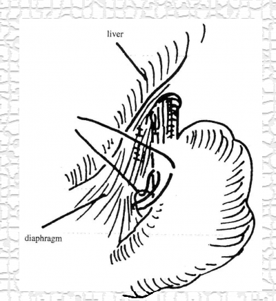 - קיבוע אחורי לקשתות הסרעפתיות ולרצועה הקשתית האמצעית (Median arcuate ligament). כלומר, ביצוע Posterior gastropexy, כמו בשיטת Hills.