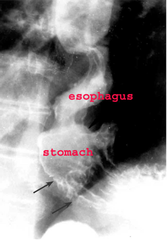 - בבליעת בריום אפשר להוכיח שאכן הצל הוא פונדוס הקיבה (תצלום 11.1)