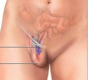 - כאשר השק גולש לשק האשכים (בקע על-שם Cooper).