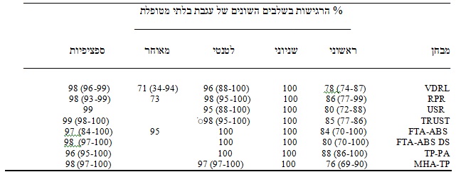 רגישות וספציפיות של מבחנים סרולוגיים לגילוי עגבת