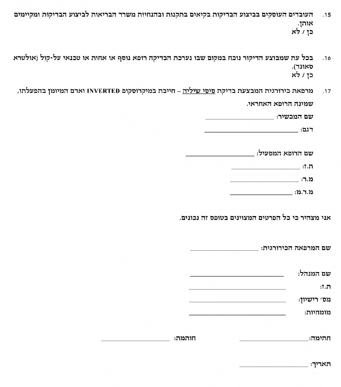 | (3) בבית החולים קיימים נהלי שמירה על סטריליות במהלך הבדיקה; | |||