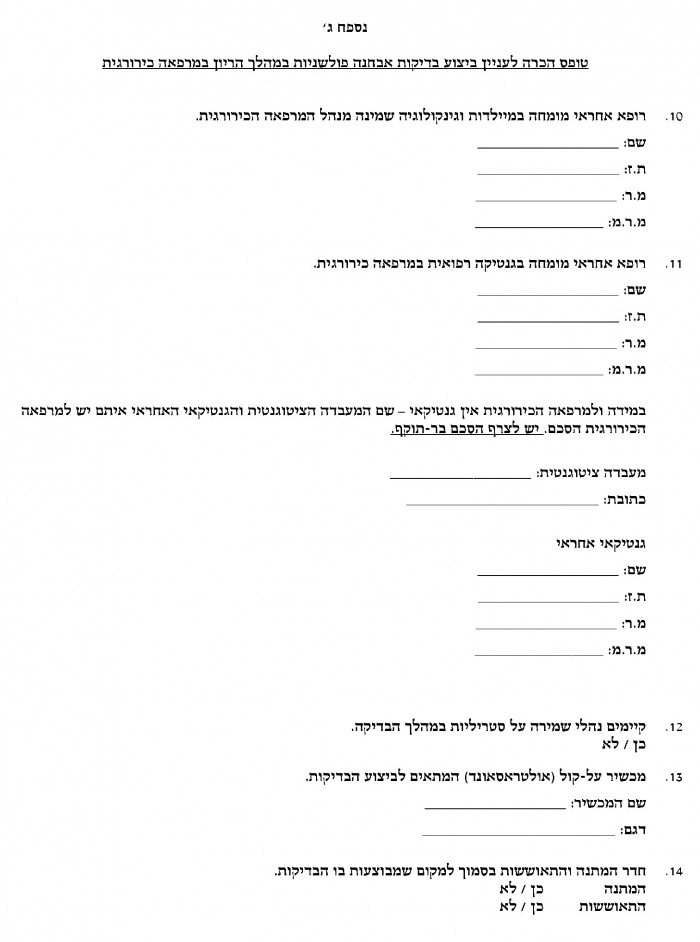 נספח ג' - טופס הכרה לעניין ביצוע בדיקות אבחנה פולשניות במהלך היריון מרפאה כירורגית