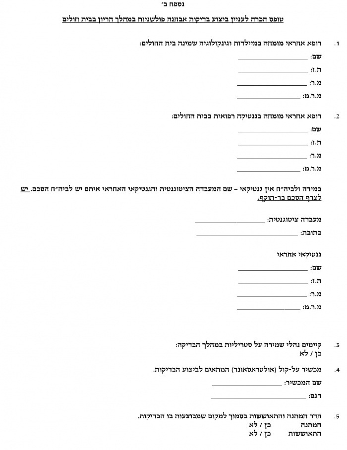 נספח ב' - טופס הכרה לעניין ביצוע בדיקות אבחנה פולשניות במהלך היריון בבית חולים