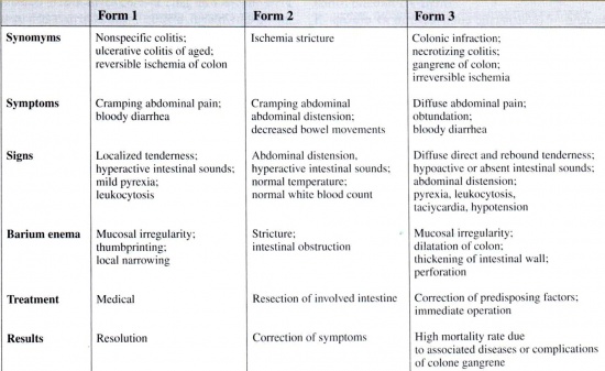 טבלה 2.6 : מחלת כרכשת איסכמית (Ischemic colon disease)