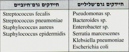 טבלה 3.17: חיידקים הגורמים לאלח-דם.