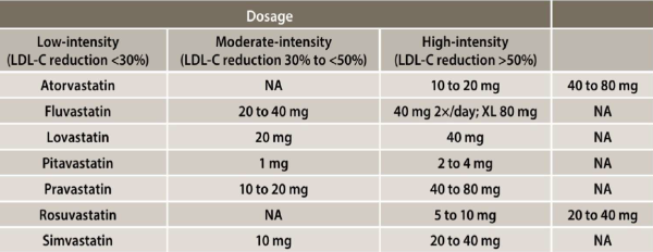 - יעד הטיפול הראשוני הוא רמת LDL-כולסטרול נמוכה מ-70 מ"ג לד"ל בחולים בסיכון נמוך, ו-55 מ"ג לד"ל בחולים בסיכון גבוה
