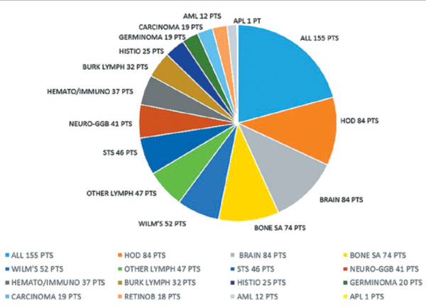 פילוג הסוגים השונים של המחלה הראשונית במחלימים מופיע בתמונה מספר 2. סוגי סרטן ילדות השכיחים היו לוקמיות (168), לימפומות (163), גידולי מוח (84), וגידולי עצמות (74).