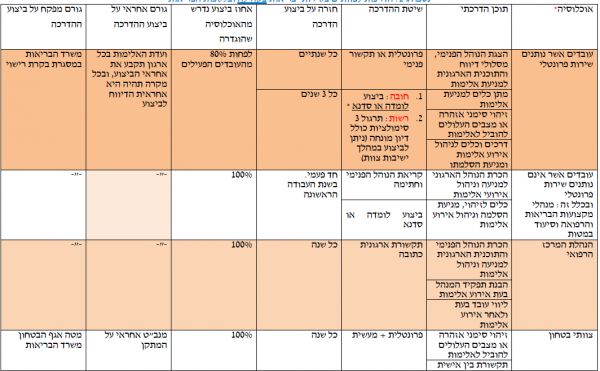 | 5 | עובדים נותני שירות פרונטלי עברו הדרכה ב3 שנים האחרונות | על פי עיון בתיעוד + תשאול 2 עובדים רלוונטיים בצורה אקראית |