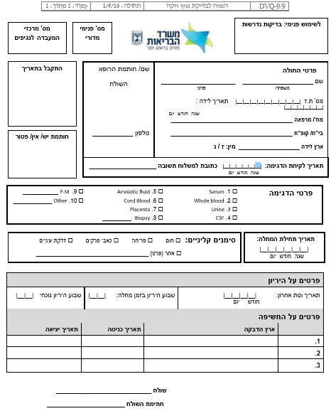 נספח 1ג' - טופס משלוח דגימת מעבדה