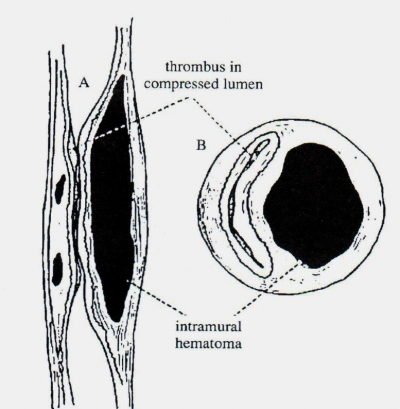 פצעי קרע ומחיצה יכולים לגרום לקרעים טרנסמורליים, או לקרעים חלקים, תוך יצירת המטומות תוך דופניות, החוסמות את נהור כלי הדם (תמונה 14.16). הטיפול במקרים אלה דורש לפעמים ליצור מעקפים לאותו סגמנט נגוע (איור 17.16).