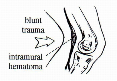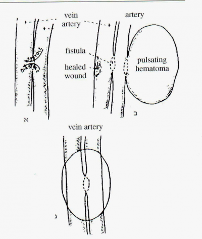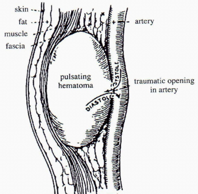 פציעות כאלה יכולות לפגוע בכל אחד מכלי הדם הגדולים, כאשר דפקים תקינים אינם מעידים על כלי דם תקינים.