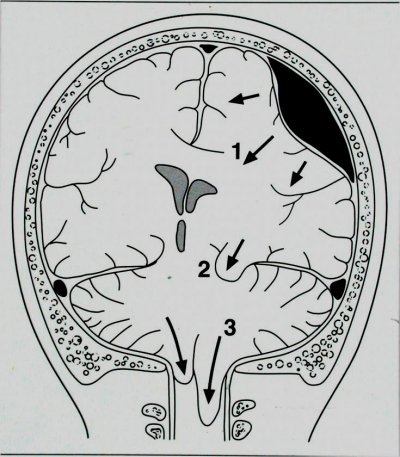המטומה אפידורלית היא מצב שבו נוצר שטף-דם בין דורה לעצם הגורם ללחץ על המוח. בחבלות לטרליות בעיקר נפגע העורק Middle meningeal שהוא הגורם העיקרי להתפתחות המטומות אפידורליות (איור 3.16).
