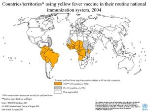 קדחת צהובה היא אחת מהמחלות היחידות שמדינות מסוימות מציבות דרישה שמטיילים לאזור נגוע חייבים לקבל חיסון לפני כן. במדינות אלה יש לרוב תקנות שמחייבות בידוד אנשים שהגיעו לאזור נגוע ללא תיעוד שקיבלו חיסון לקדחת צהובה. זאת מכיוון שאחד ממעבירי המחלה, יתוש ה-Aedes, קיים גם באזורים טרופיים אחרים בעולם (שבהם אין קדחת צהובה) וישנו פוטנציאל להתפרצות המחלה אם תובא לשם.