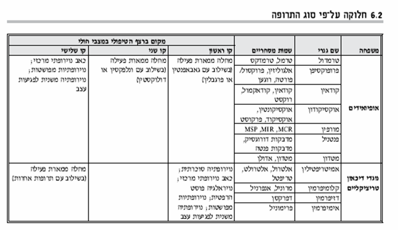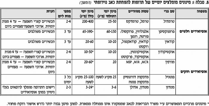 • לכל תרופה מוגדר "חלון טיפולי" המפורט בטבלה מספר 1. במידה וחולה טופל במינון התרופה המרבי המומלץ ולא הושגה הקלת כאב משמעותית, יוגדר ניסיון הטיפול ככישלון.