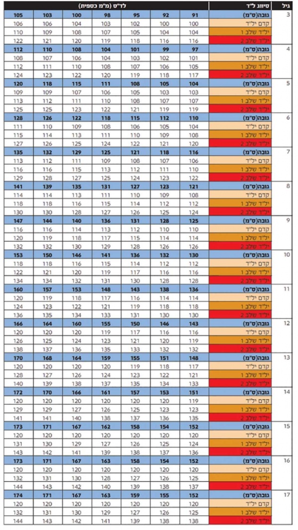 נספח מספר 1 - יתר לחץ דם סיסטולי לדרגותיו בבנות, לפי גיל וגובה