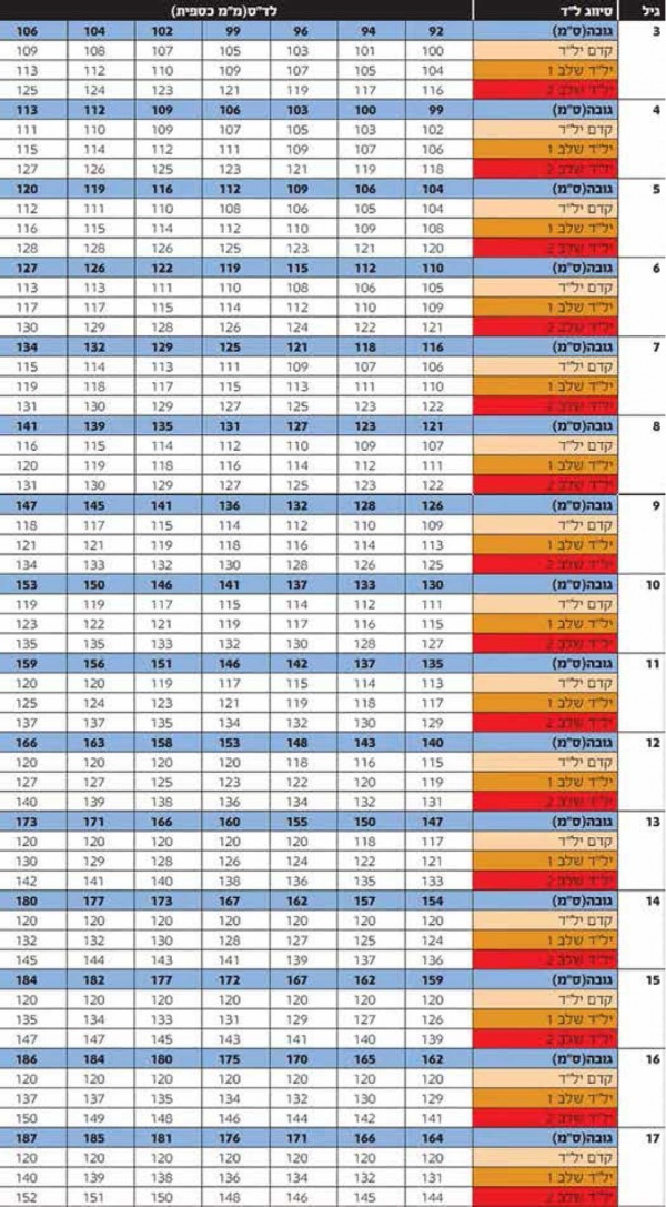 נספח מספר 2 - יתר לחץ דם סיסטולי לדרגותיו בבנים, לפי גיל וגובה