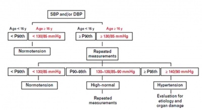 - ↑ 14.0 14.1 14.2 14.3 14.4 Lurbea E, Agabiti-Roseic E, Kennedy Cruickshank J, et al. 2016 European Society ofHypertension guidelines for the management of high blood pressure in children and adolescents. J Hypertens 2016; 34(1): 1-34