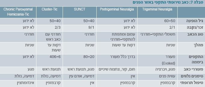ישנן צורות אחרות של כאב פנים נוירופתי-התקפי (טבלה 5).