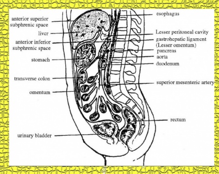 הצפק בעובר הוא שק אנדותליאלי שלתוכו צומחים וגדלים איברי הבטן, וכך נוצרים כיסים רבים בחלל הבטן. ה-Lesser sac הוא חלל הנמצא מתחת לקיבה ולרצועה הקיבתית-כבדית של הפדר הקטן (Gastrohepatic lesser omentum ligament) ומתחבר לחלל הצפק (פריטונאום) דרך פתח קטן יחסית- הנקב על שם Winslow. שטח הפנים של האנדותל הוא חלק ובדרך כלל מכוסה בכמות קטנה של נוזל המפריד בין עלי הצפק. בחלקו החיצוני של הצפק נמצאים רשת כלי דם נימיים (קפילריים) וכלי לימפה רבים (איור 1.2).