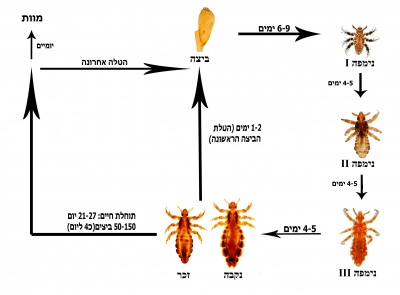 <ref>לא תקין; לא נכתב טקסט עבור הערות השוליים בשםהערה6- ↑ Mumcuoglu KY, Barker SC, Burgess IF, Combescot-Lang C, Dagleish RC, Larsen KS, Miller J, Roberts RJ, Taylan-Ozkan A. 2007. International guidelines for effective control of head louse infestations. J Drugs Dermatol. 6: 409-414.