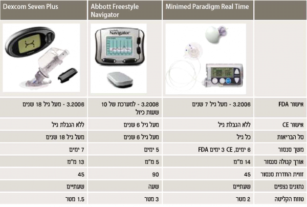 המידע בטבלה ביחס לגיל אישור ה-CE וה-FDA וכן המידע ביחס לסל הבריאות עשוי להשתנות. לפני מעבר לשימוש במד סוכר רציף, על המטופלים לקבל הדרכה לגבי שימוש במד סוכר רציף בשני מישורים, טכנית וטיפולית.