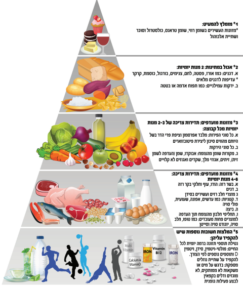 3* מזונות מועדפים: תדירות צריכה של 2–3 מנות יומיות מכל קבוצה: