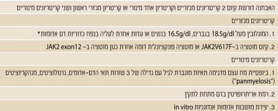 טבלה 1. קריטריונים של ארגון הבריאות העולמי (2008) לאבחון של פוליציטימיה ורה