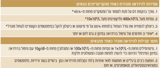 טבלה 3. קריטריונים לעמידות או חוסר סבילות ל-Hydrea‏, ELN) European Leukemia Net)
