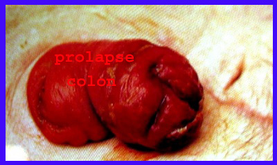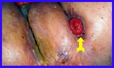 - שמט (Prolapse) של הקולוסטומיה, הכרכשת נשמטת דרך פתח הקולוסטומיה (תמונה 3.6).
