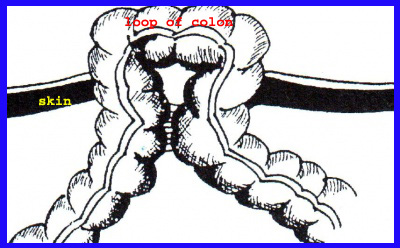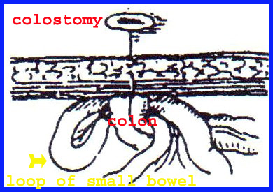 - א. Loop colostomy - כאשר לולאת כרכשת שלמה מוצאת לפני העור ומשמשת כקולוסטומיה (איור 5.6 ו-6.6 תמונה 2.6).