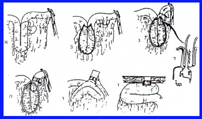 ה"שרוול" השרירי: שמירת ה"שרוול" השרירי של החלחולת הרחיקנית נחשבה רכיב עיקרי בשמירת תפקודי השליטה. במרוצת השנים הובן, כי השארת שרוולים ארוכים העלתה את שכיחות הסיבוכים והזיהומים, ולכן הוחל ביצירת שרוולים קצרים, של 3-2 ס"מ. באחרונה פורסמו חיבורים, המתארים ניתוחים שלא הושאר בהם שרוול שרירי כלל. בגישה זו אפשר לחבר את המעי הדק לפי הטבעת בעזרת מהדקים אוטומטיים, המאפשרים השקה בלא צורך ברטרקציה ובהרחבה פולשנית הפוגעת בסוגרים (איור 27.6).