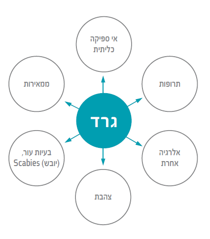 - מחלת עור ראשונית - אטופיק דרמטיטיס, קונטקט דרמטיטיס, פסוריאזיס