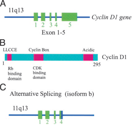 Cyclin D1 הוא חלבון המווסת את הכניסה של התא ל-cell cycle. הוא מסייע למעבר בין פאזות G0 ו-G1. ברקמות נורמליות, תאים אפיתליאליים בזליים, תאי אנדותל ותאי סטרומה נצבעים לרוב באופן חיובי ל-cyclin D1. כתוצאה מטרנסלוקציה בה קשורים הגן ל-cyclin D1 ו-IgH, t(11;14), הרוב המכריע של mantle cell lymphomas מבטאים ביתר את cyclin D1. הגן המקודד ל-cyclin D1 באדם שובט במקור כ-break-point rearrangement באדנומה של הפארא-תירואיד (Motokura וחב' ב-Nature משנת 1991). במקביל, ההומולוג של cyclin D1 במכרסמים זוהה כ-colony-stimulating factor-1-responsive gene במקרופאגים (Sherr וחב'-Cell משנת 1985). ידוע שכאשר cyclin D1 מוחדר בעכברים לבלוטת הפארא-תירואיד, הוא מסוגל להשרות אדנומה בבלוטה זו, ואף לווסת בעכברים את החישה של ++Ca (על פי Imanishi וחב' ב-Journal of Clinical Investigation משנת 2001). במקרופאגים, cyclin D1 חיוני לנדידת תאים אלה המכוונת על ידי colony-stimulating factor-1 (על פי Neumeister וחב' ב-Mol Biol Cell משנת 2003). בעשור הראשון של המאה ה-21, הבנת הפעילות של cyclin D1 סייעה ליתר הבנה של סינתזת DNA בתאים, ואת המנגנונים המולקולריים המניעים את התהליך הטומורוגני. התגברה ההבנה כיצד cyclin D1 מווסת את ההתמיינות והשגשוג של תאים (Wang וחב' ב-Cancer Treat Res משנת 2004, Sherr ב-Cell משנת 2004, ו-Hanahan ו-Weinberg ב-Cell משנת 2000).