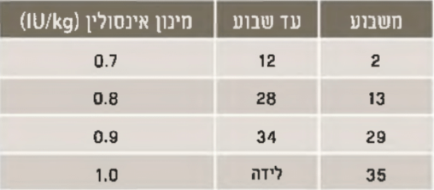 טבלה 4 ספר סוכרת - סוכרת היריון