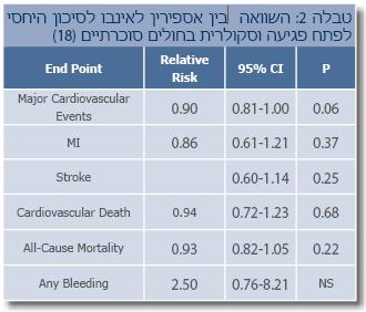 אספירין למניעה ראשונית של מחלות לב וכלי דם בחולי סוכרת