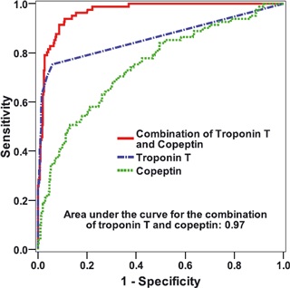 מדידה משולבת חד-פעמית של רמת טרופונין-T וקופפטין בה מתקבלת תוצאה שלילית שוללת אפשרות של תסמונת כלילית חדה (ACS)