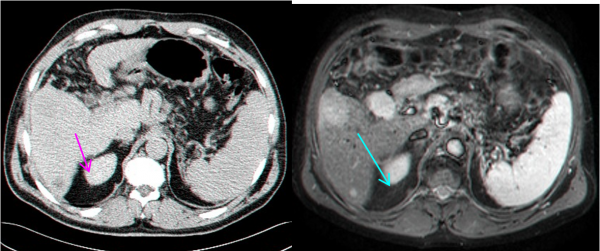- MRI הוא אמצעי טוב להדגמת השאתות, מקומן האנטומי ויחסן לכלי הדם בכבד (תצלום 34.10). נמצא שה- MRI הוא יותר רגיש ויותר ספציפי ביחס ל- CT, אולם יותר יקר ממנו.