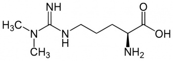 חנקן חד-חמצני (NO) מיוצר על יד האנזים NOS או nitric oxide synthase, תוך חמצון החנקן בשייר ה-guanidino או HN=C של חומצת האמינו ארגינין, והפיכת חומצה זו ל-NO ולציטרולין. מולקולת הגז NO היא מרחיבה יעילה של כלי דם ותפקידה משמעותי בוויסות שפיעת הדם ולחץ-הדם. בנוסף, NO מעכב את צימות טסיות הדם ואת ספיחתם של לויקוציטים לאנדותל כלי הדם., ומפחית את שגשוגם של תאי שריר חלק בדופן כלי הדם. נראה אם כן, ש-NO הוא בעל פעולה נוגדת טרשת, ושיבוש ביצירתו מארגינין עלול לגרום לסיבוכים קרדיו-וסקולאריים. וכך אמנם נצפו תהליכים מואצים של טרשת עורקים ויצירת מפרצות, בעכברים טרנסגניים בהם הושרתה פגיעה באנזים NOS.